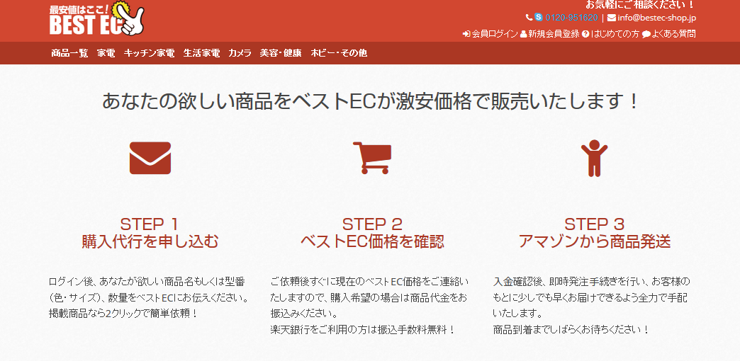 商品はベストECがアマゾン・楽天市場の店舗に直接発注し、発注先店舗から直接お客様のもとにお届けいたしますが、商品がお客さまの元に届くまではベストECが責任をもって対応を行う。