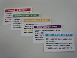 金券ねっとの方が値段も安かったので、その次からも金券ねっとで購入しました。すると、2回目だったか3回目だったか、また送料割引カードが入っています。今度は「次回から送料半額190円!」と書いてあります。